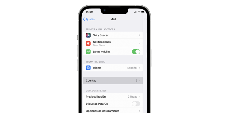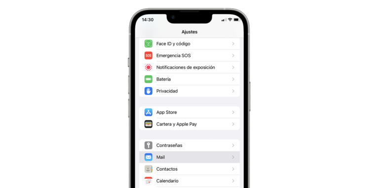 1. Tenemos que abrir la configuración del iPhone y acceder al apartado de mail: