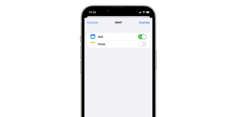 9. Una vez aquí tenéis que marcar que queréis sincronizar con el dispositivo, por defecto dejamos solamente el mail, y ya lo tendremos configurado.